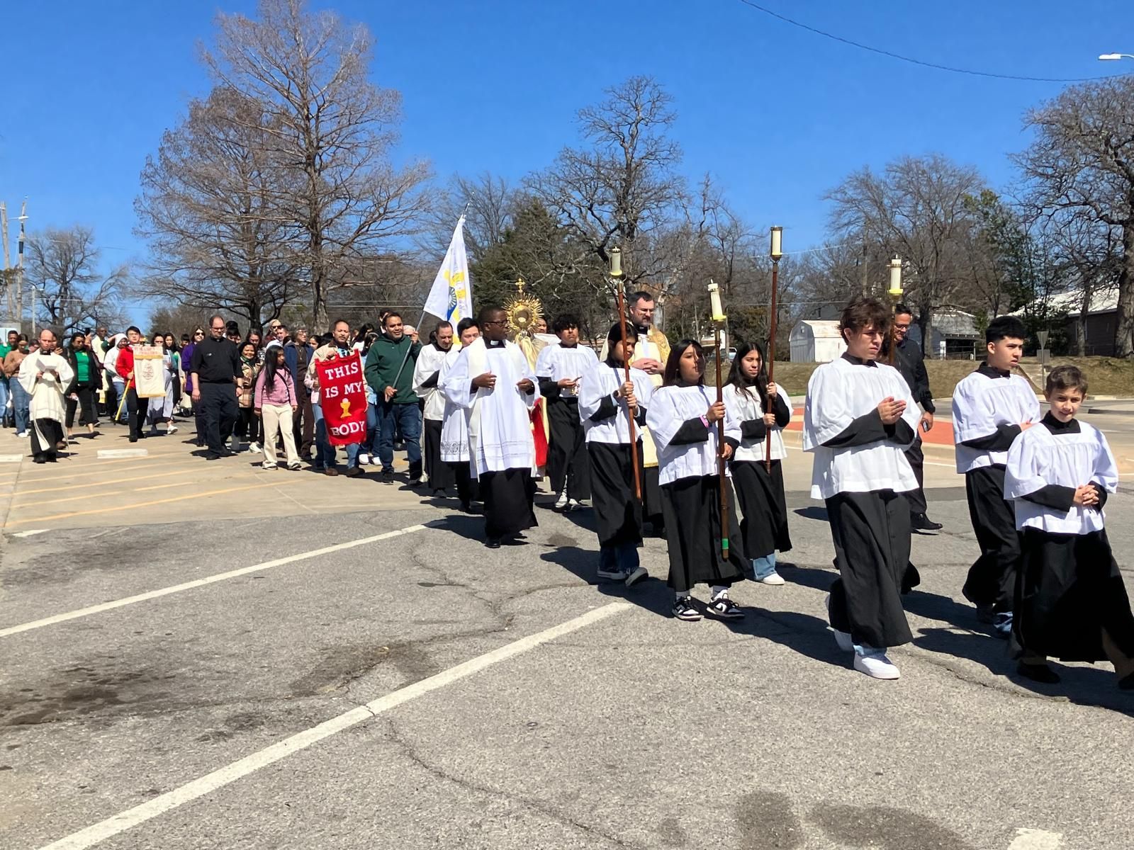 These photos captured the Mini Eucharistic Conference complete with Mass, all-day Adoration, Confession, and ending with a Eucharistic Procession. Our parish hosted the event on Saturday, March 1, 2025 with nearly 200 parishioners and guests in attendance.